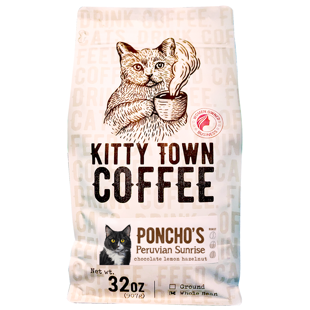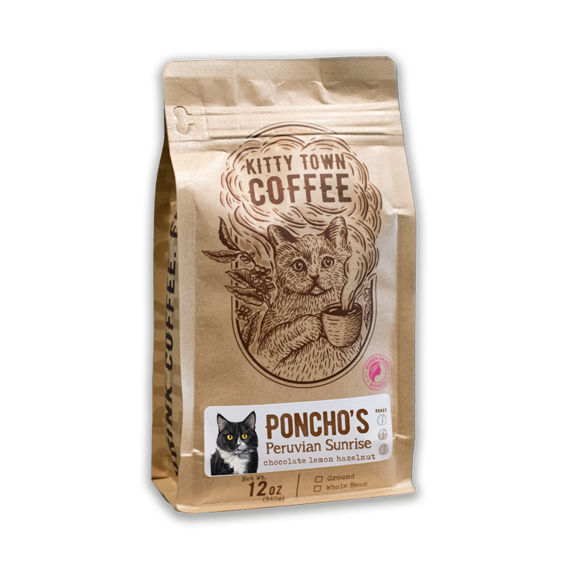 Every 12oz bag of coffee you buy feeds a homeless kitty in a shelter for one week!